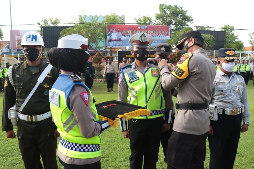 BREBES (iPOLICENews) – Kapolres Brebes, AKBP Faisal Febrianto memimpin kegiatan apel gelar pasukan Operasi Lilin Candi tahun 2021 di Halaman Mapolres Brebes, Kamis (23/12/21).