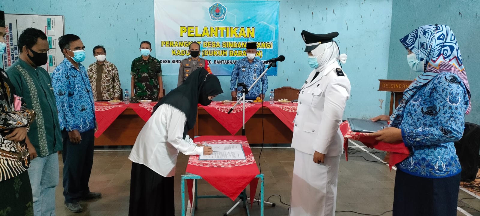 BREBES (IPOLICENews) – Forum Koordinasi Pimpinan Kecamatan (Forkompincam) Bantarkawung, Kabupaten Brebes, Jateng, hadiri pelantikan perangkat desa atas nama Diah Ayu Pitaloka dilantik menjadi Kepala Dusun Babakan, Desa Sindangwangi yang mengambil tempat di Aula Balai Desa Sindangwangi kecamatan Bantarkawung .Kamis (17/2/22).
