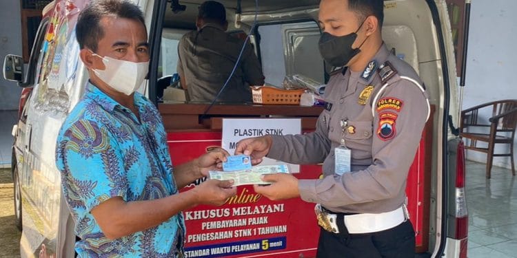Dalam pelayanannya, selain melayani pajak kendaraan, personil yang mengoperasikan juga mensosialisasikan bahwa Polres Karanganyar membangun Zona Integritas (ZI).