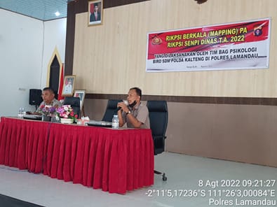 Pada tahun 2022 tes psikologi di ikuti oleh personel Polres Lamandau pengemban fungsi opersional dengan jumlah peserta sebanyak 57 personel.