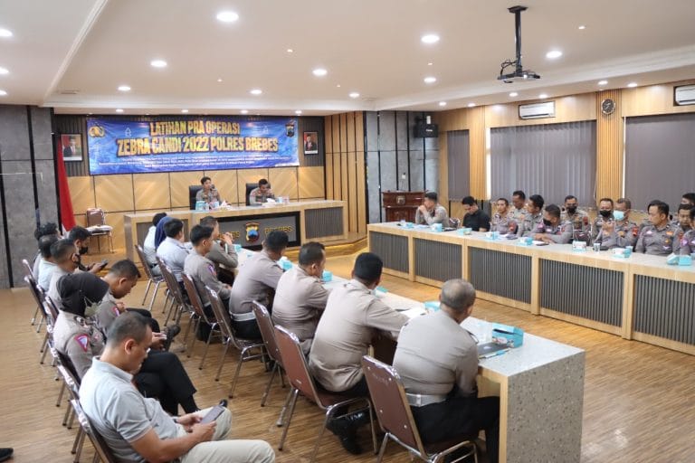 BREBES (iPOLICENews) – Polres Brebes menggelar Pelatihan Operasi Zebra Candi tahun 2022 bagi anggota personel yang akan dilibatkan dalam Operasi Zebra 2022 di Aula Tantya Sudhirajati, Jum’at (30/9) pagi.