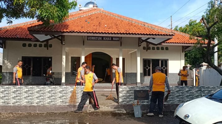 Kegiatan tersebut dipimpin Kabag SDM Polres Brebes Kompol Pipit Witianingsih bersama-sama Personil Polres Brebes dengan menggunakan alat kebersihan. Secara serentak mereka membersihkan lokasi tempat ibadah tersebut serta areal sekitarnya.