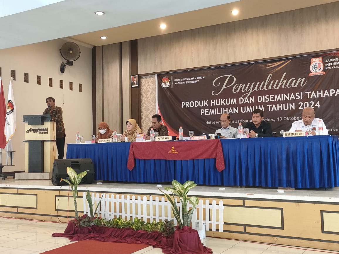 BREBES (iPOLICENews) – Menghadapi Pemilu serentak Tahun 2024, Komisi Pemilihan Umum (KPU) Kabupaten Brebes mengadakan Sosialisasi Produk Hukum sekaligus Diseminasi Tahapan Pemilu 2024 di Aula Hotel Anggraini Jatibarang Brebes, Senin (10/10).