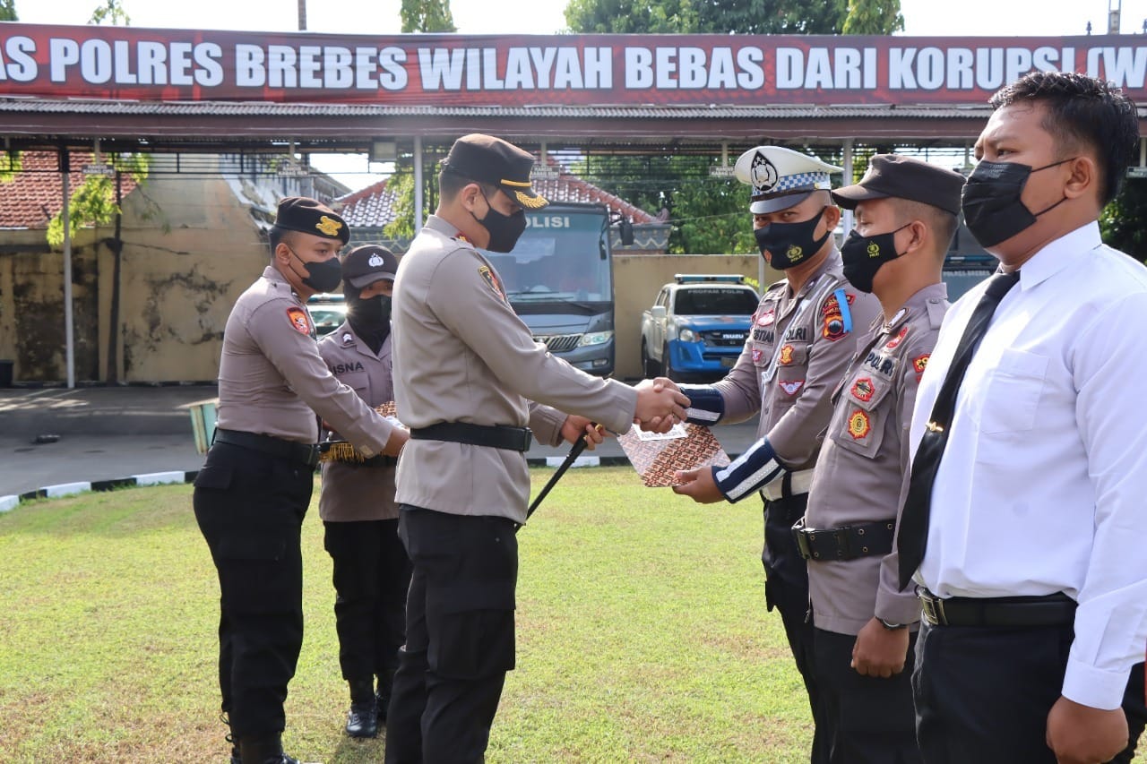 BREBES (iPOLICENews) – Sebanyak 14 (Empat belas) personel dari berbagai fungsi dan Polsek jajaran menerima penghargaan dari Kapolres Brebes AKBP Faisal Febrianto atas prestasi yang diraih baik di bidang Operasional maupun pembinaan serta prestasi di bidang lainya.