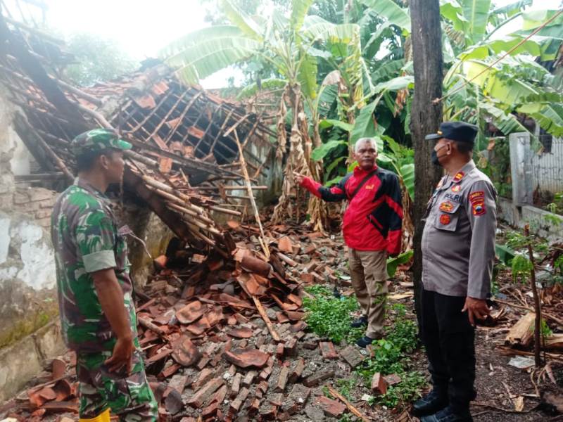 Tampak Babinsa dan Bhabinkamtibmas setempat, melakukan pengecekan dan mendata kerusakan di rumah-rumah warga.