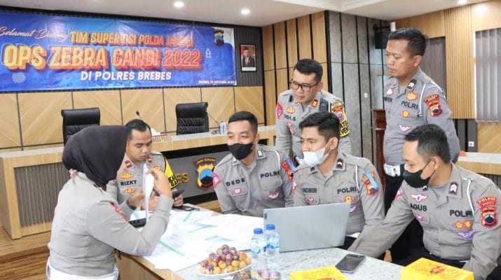Brebes (iPOLICENews) – Polres Brebes menerima tim supervisi Operasi Zebra Candi 2022 dari Polda Jateng, Jumat (14/10/2022). Tim supervisi di pimpin oleh Kabagdalops Roops Polda Jateng AKBP Djodi Winarno bersama tim rombongan, yakni Kompol Ryke Rhimadila, AKP Indri Endrowati, Bripka Maulana Firdaus dari Ditlantas Jateng dan Brigadir Vicky Diego, anggota Roops Polda Jateng.