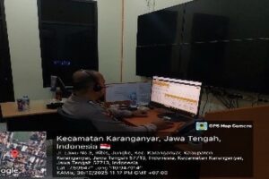 Pantauan di lokasi, terlihat empat anggota Satlantas Polres Karanganyar berdiri sambil membawa bendera merah putih di tengah Simpang Empat Papahan.