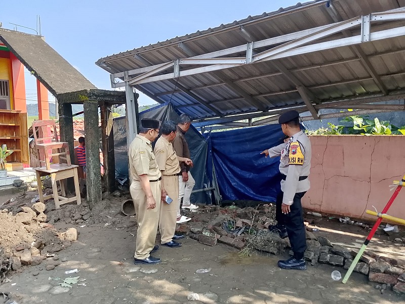 Polsek Paguyangan Polres Brebes mendapat laporan langsung terjunkan dua anggota Kanit Intel Aiptu Juanda dan Aiptu Huda bersama Ahmad Jawawi S.Ag. Korwilsatpendikcam Paguyangan tinjau lokasi di SDN Winduaji 02.
