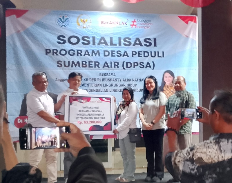BREBES (iPOLICENews) – Anggota Komisi VII DPR RI Santy Alda Nathalia, dari Fraksi PDI Perjuangan, bersama Kementerian Lingkungan Hidup dan Kehutanan (KLHK) Republik Indonesia, menggelar Sosialisasi Program Desa Peduli Sumber Air (DPSA) di halaman Kantor Desa Galuh Timur, Kecamatan Tonjong, Kabupaten Brebes, pada Jumat, 10 Oktober 2025.