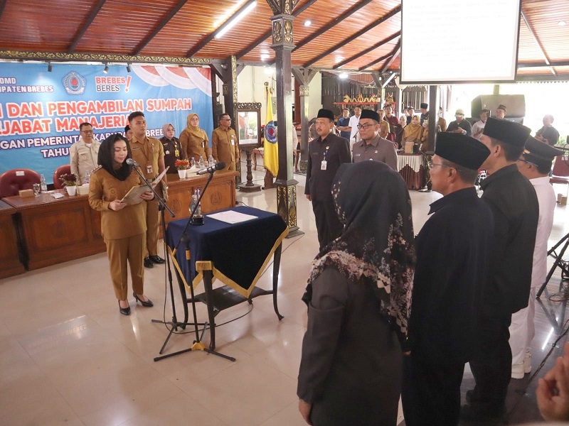 Hal tersebut disampaikan pada Pelantikan dan Pengambilan Sumpah Pejabat Pimpinan Tinggi Pratama, Administrator, dan Pengawas di lingkungan Pemerintah Kabupaten Brebes, di Pendopo Kabupaten Brebes, Senin (20/10/2025).