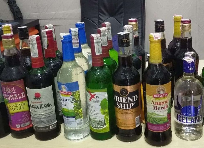 Barang bukti yang diamankan antara lain tujuh botol air mineral ukuran besar berisi ciu, tiga botol Draft Beer, dua botol Kkawa-Kawa, serta dua botol Singaraja.
