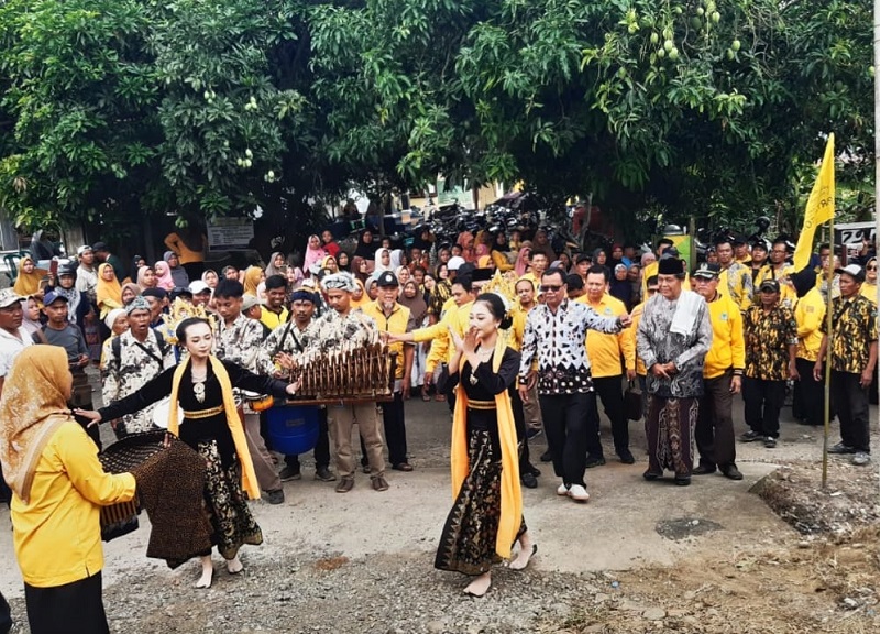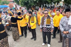 BREBES (iPOLICENews) – Semarak dalam semangat kebersamaan dan pengabdian untuk rakyat, DPD Partai Golkar Kabupaten Brebes menggelar Perayaan Hari Ulang Tahun (HUT) ke-61 Tahun Partai Golkar, Wakil Bupati Brebes Wurja SE dan tamu undangan disambut Seni budaya Sunda Calung dibarengi Tarian mengiringi lagu Perahu layar.